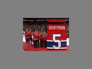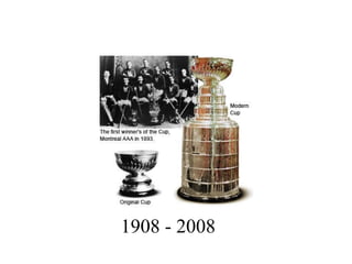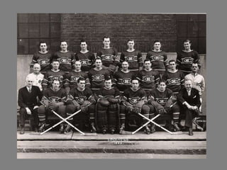 Le document présente une chronologie de l'histoire du hockey à Montréal, mettant en avant des joueurs légendaires et des événements clés de 1908 à 2008. Il mentionne des figures emblématiques comme Georges Vézina, Maurice Richard et Patrick Roy ainsi que des événements marquants tels que les victoires en championnat. Cette rétrospective souligne l'importance culturelle du hockey dans la ville.