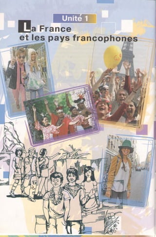 Le document présente un manuel de français destiné aux élèves de 11e classe, axé sur l'apprentissage de la langue à travers une approche communicative. Il traite de divers sujets culturels et pratiques de la vie quotidienne en France et dans les pays francophones, offrant des activités visant à enrichir les compétences linguistiques des étudiants. Le manuel aborde également les caractéristiques géographiques et les cultures des pays francophones, avec une attention particulière à l'intégration de la langue dans des situations de communication réelle.