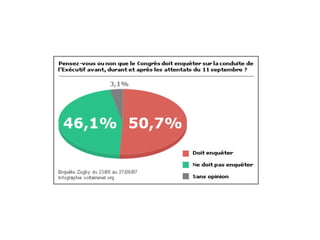 Le document remet en question les conclusions de la commission d'enquête sur les attentats du 11 septembre 2001, soulignant des incohérences concernant l'effondrement des tours et les événements au Pentagone. L'auteur évoque des théories sur la possible implication du gouvernement américain et des manipulations financières, comme des délits d'initiés, en lien avec les attentats. Des appels croissants pour rouvrir l'enquête et dévoiler la vérité sont également mentionnés.
