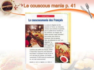 Le document mentionne une soirée couscous prévue sur la page 10. Il inclut également des pages à terminer dans un cahier, numérotées 3, 5-11, et 13-26. Il semble s'agir d'instructions pour un événement ou une activité liée à ce thème.