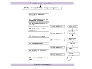 Le document propose un parcours de formation à distance en langue anglaise, structuré en étapes allant de l'évaluation des niveaux à l'organisation des modules et des ressources. Il présente des options de formation mixte ou entièrement à distance, avec un suivi régulier des stagiaires et une attention particulière à l'individualisation des parcours. L'accent est mis sur l'interaction entre les stagiaires et les formateurs pour enrichir l'expérience d'apprentissage.