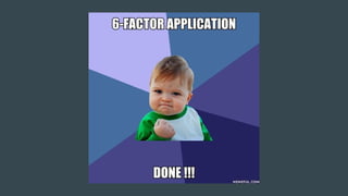 Le document présente la méthodologie des applications 12-factor, essentielle pour le développement d'applications cloud-native, en utilisant node.js et Docker. Il décrit les bonnes pratiques pour la portabilité, la scalabilité, la configuration et l'utilisation de services externes, en insistant sur l'importance de processus stateless et de l'architecture microservices. La présentation inclut également des exemples de code et de configuration pour illustrer l'implémentation de ces principes.
