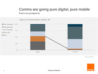 Le document présente une mise à jour mensuelle d'Orange en septembre 2013, mettant en avant l'importance de l'innovation et de la collaboration avec les consommateurs dans le développement de nouveaux produits et services. Il décrit aussi plusieurs initiatives, telles que des ateliers de co-création et des solutions numériques pour l'éducation et les collectivités, visant à améliorer l'expérience client et à renforcer l'implication des utilisateurs. Enfin, il aborde la transformation numérique via des technologies IoT et des plateformes de données pour faciliter les services aux entreprises et aux particuliers.