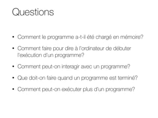 Le document présente une introduction aux systèmes d'exploitation, expliquant leur rôle essentiel dans la gestion des ressources matérielles et l'exécution des programmes. Il aborde également les différents types de systèmes d'exploitation, tels que les multitâches et les systèmes embarqués, en détaillant leurs caractéristiques respectives. Enfin, il souligne l'importance de l'interface utilisateur et de la gestion des ressources pour une utilisation efficace de l'ordinateur.
