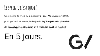 La méthode du Google Sprint permet à une équipe pluridisciplinaire de prototyper rapidement un produit en cinq jours. Les cinq étapes clés incluent la cartographie, le dessin, la décision et le storyboard, le prototypage, et les tests utilisateurs pour valider les idées et optimiser le projet. Bien que la méthode soit rapide et engageante, elle nécessite la mobilisation de plusieurs personnes et peut sembler désordonnée au début.