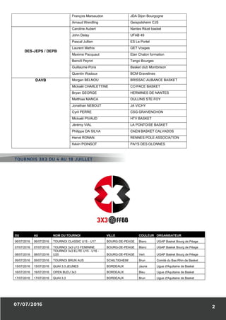 La saison 2015/2016 a vu un total de 14 441 licences au sein de l'infbb, incluant 14 440 licences de compétition et une unique licence de contact. Divers diplômes de coachs en basketball ont été délivrés, avec une liste de diplômés fournie. Plusieurs tournois de basketball et des réunion importantes ont eu lieu durant le mois de juillet, y compris des qualifications olympiques à Manille.