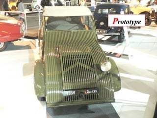 Le document semble discuter de divers types de véhicules, y compris des prototypes et des modèles spécifiques comme le 4x4 Sahara et des modèles associés à des événements comme le Dakar. Il mentionne également des concepts variés tels que des remorques, des cabriolets, et des designs proportionnels. La liste est éclectique, englobant des éléments allant de véhicules de loisirs à des prototypes de compétition.
