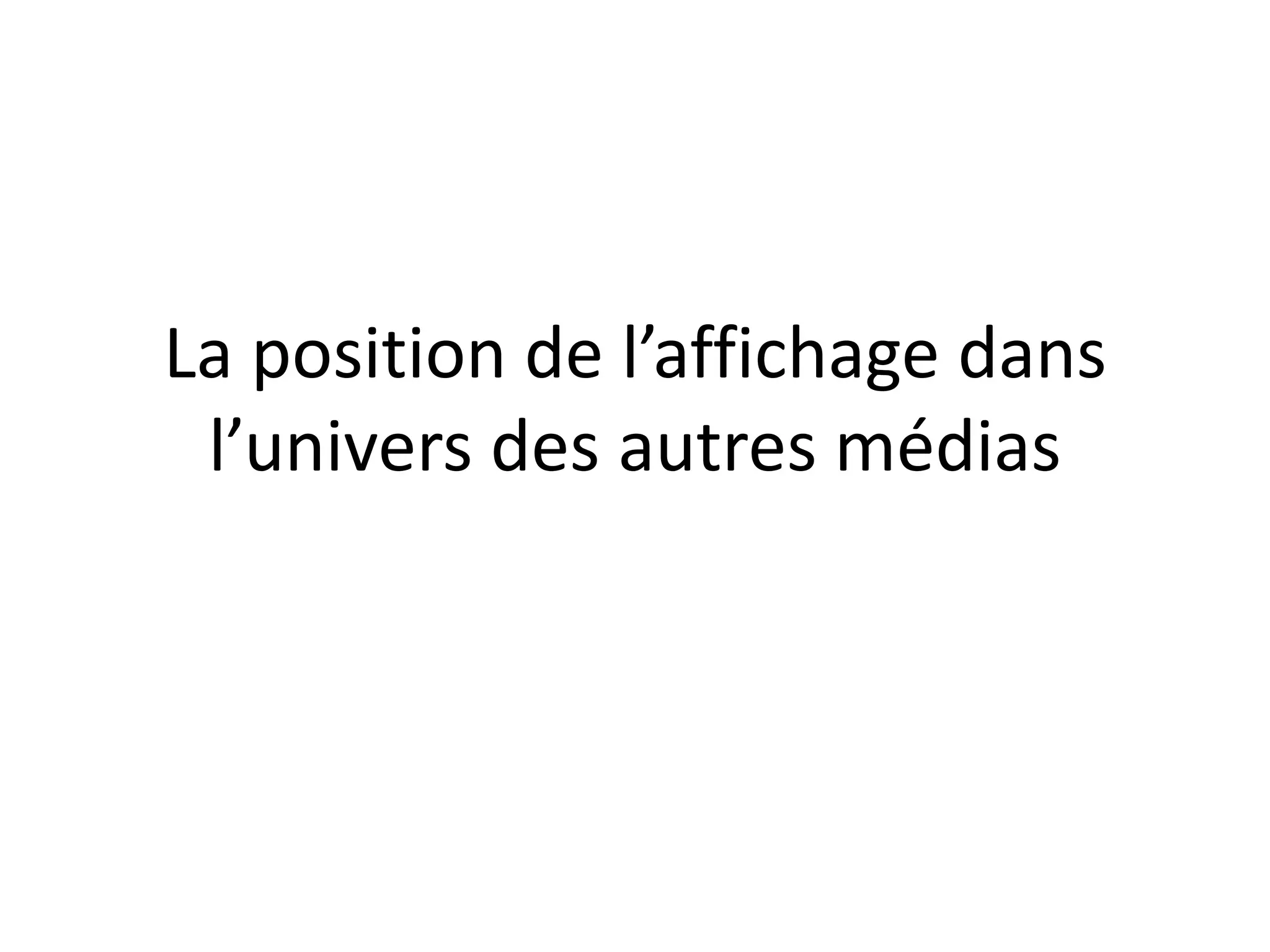 L'affichage traverse une crise impactant ses formats traditionnels, mais certains segments comme le transport et le digital résistent. Tous les médias, y compris la télévision et la presse, sont affectés et doivent s'adapter. L'affichage peut réussir en ciblant efficacement des audiences spécifiques et en innovant dans ses approches.