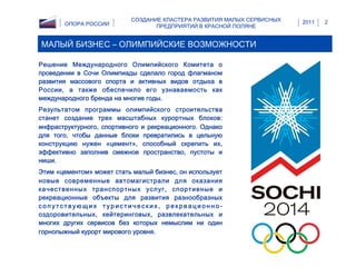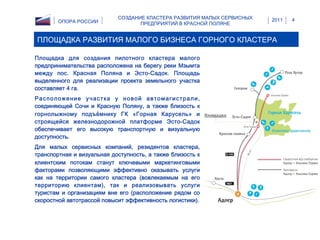 Создание кластера развития малых сервисных предприятий в красной поляне опора россии
