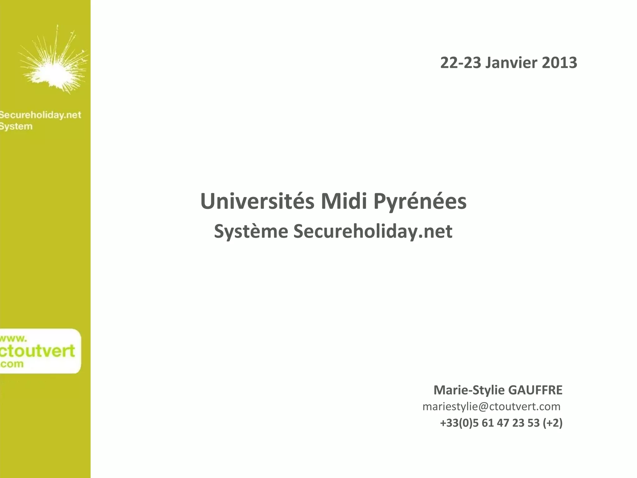 Le document présente des solutions de diffusion d'offres pour les établissements d'hébergement en Midi-Pyrénées via le site secureholiday.net, notamment des packs individuels et groupes. Il décrit également les services de gestion des allotements, des avis consommateurs, et des offres spéciales, tout en recommandant des stratégies de diffusion ciblée. Enfin, des conseils sont fournis sur la limitation des offres pour maximiser l'impact sur les internautes.