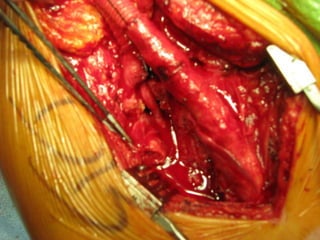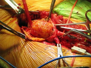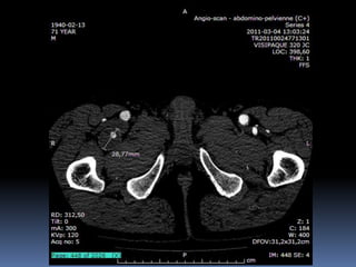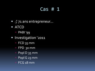 Le document présente des cas d'anévrismes fémoraux, détaillant l'historique médical et les complications des patients. Il aborde l'épidémiologie, la présentation clinique et les indications pour la chirurgie de reconstruction. Le texte souligne également les risques de rupture et la nécessité de suivre attentivement les dimensions des anévrismes.