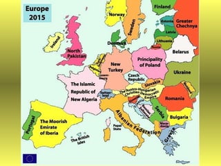 Le document compare différentes facettes de la vie en Europe et en Amérique en 2015, en mettant en avant des références culturelles et historiques. Il évoque un sentiment d'ironie face aux évolutions sociales et technologiques de cette année-là. Enfin, il fait allusion à Charles Martel, suggérant une continuité ou un parallèle avec des luttes passées.