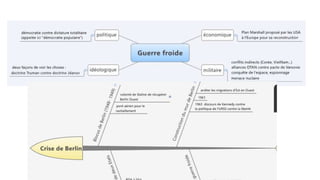 Le document aborde la guerre froide, en se concentrant sur la crise de Berlin et les événements clés comme la crise de Cuba et la guerre de Corée. Il propose des méthodes pour mémoriser ces informations, comme la création de cartes mentales. Enfin, il évoque des aspects de l'aménagement commercial et la production en France, soulignant l'importance de la proximité des clients.