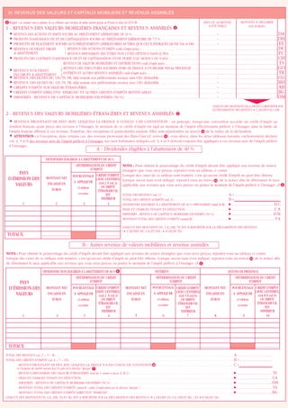 Le document est une déclaration des revenus encaissés à l'étranger pour un contribuable domicilié en France, qui doit être jointe à la déclaration principale des revenus. Il détaille les différentes catégories de revenus tels que les traitements, salaires, pensions, rentes, et plus-values, en précisant les montants à déclarer et les crédits d'impôt applicables. Les instructions incluent des spécifications sur les revenus provenant de pays avec ou sans convention fiscale avec la France.