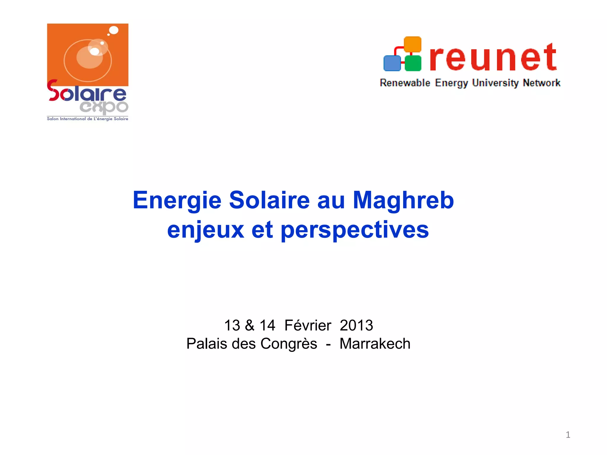 Le document présente les enjeux et perspectives de l'énergie solaire thermique en Tunisie, avec un focus sur le programme national de promotion du chauffage solaire de l'eau sanitaire, Prosol. Il décrit l'évolution du marché, les incitations financières pour l'installation de systèmes solaires, et l'importance de la formation des techniciens pour garantir la pérennité des installations. Ce programme vise également à stimuler l'entrepreneuriat et la création d'emplois dans le secteur des énergies renouvelables.