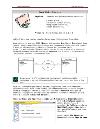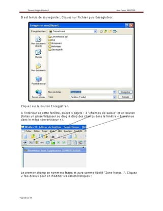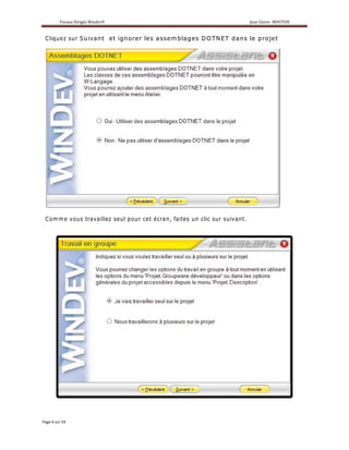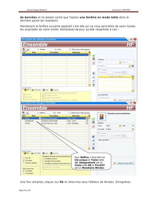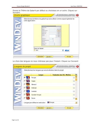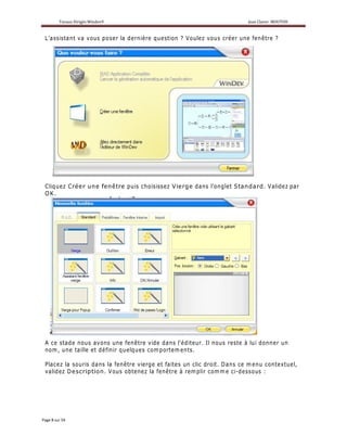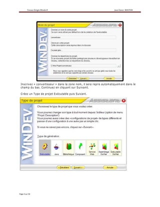 Le document présente Windev, un environnement de développement logiciel permettant de créer des applications dans divers domaines tels que la gestion, l'industrie et le web. Il explique également le fonctionnement des sockets pour la communication réseau, et fournit des instructions pour créer des projets client et serveur. Enfin, le document aborde la connexion à des bases de données MySQL et l'utilisation de requêtes SQL avec Windev.