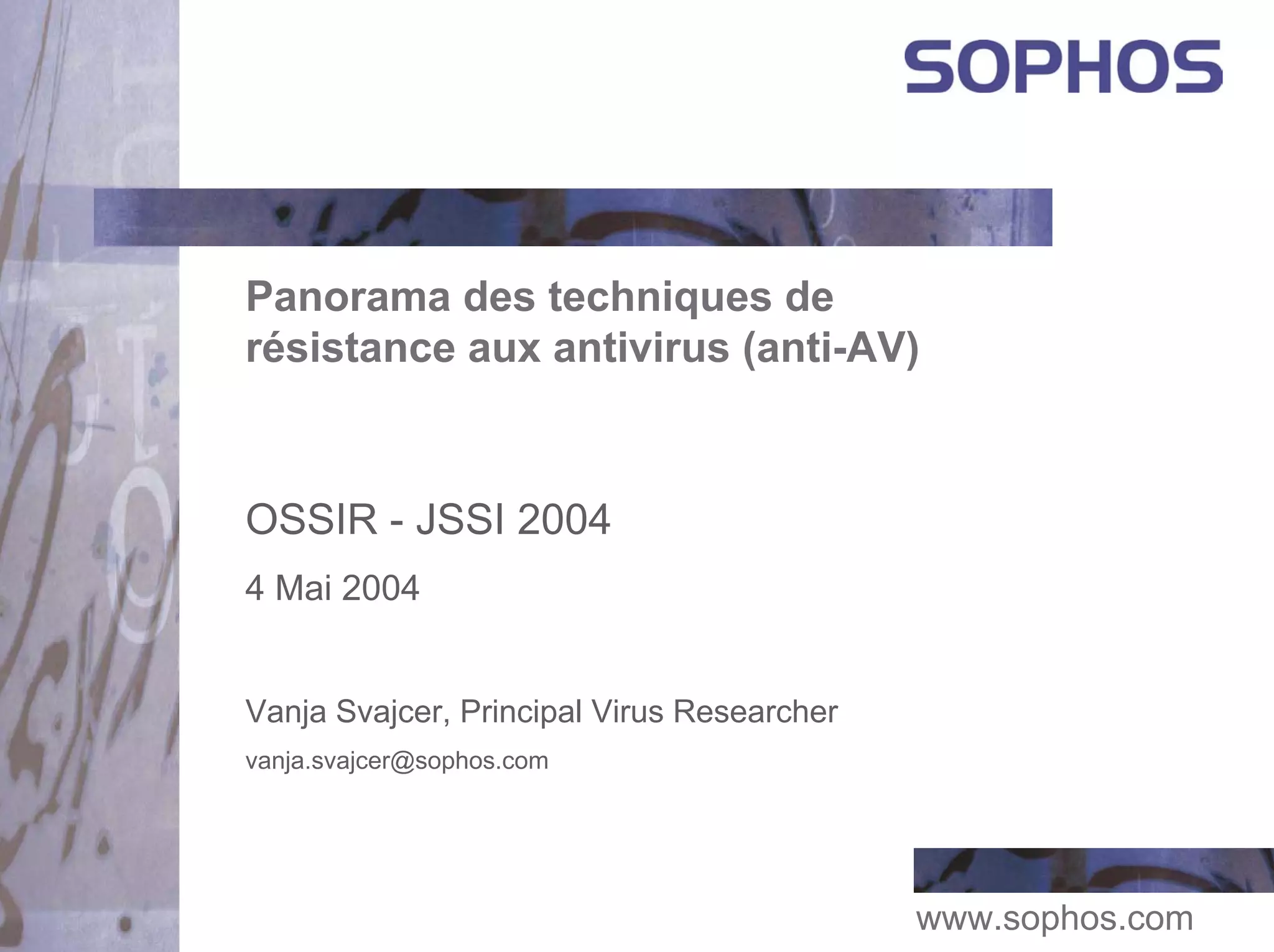Le document présente un panorama des techniques de résistance aux antivirus et les stratégies employées par les créateurs de virus pour contourner la détection antivirus. Il examine différents types de codes malicieux et détaille des techniques comme le chiffrement polymorphique et les astuces anti-émulateurs. Enfin, il propose des recommandations pour l'amélioration des mesures de protection antivirus face à des menaces de plus en plus sophistiquées.