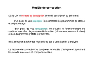 Le modèle de conception va compléter le modèle d'analyse en spécifiant