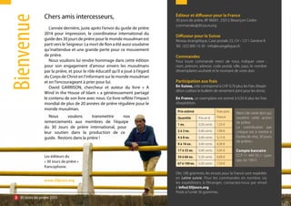 Le document présente un guide de prière pour le monde musulman de 2015, rendant hommage à un coordinateur décédé et exprimant l'importance de prier pour la paix et l'unité entre les différentes confessions. Il aborde également des statistiques sur les croyances musulmanes et les défis auxquels font face les musulmans, notamment en France et au Moyen-Orient, en lien avec les extrémismes et les conflits. Enfin, il appelle à prier pour la réconciliation et l'amour entre chrétiens et musulmans, tout en soulignant l'impact positif des actions de soutien humanitaire dans les zones de conflit.