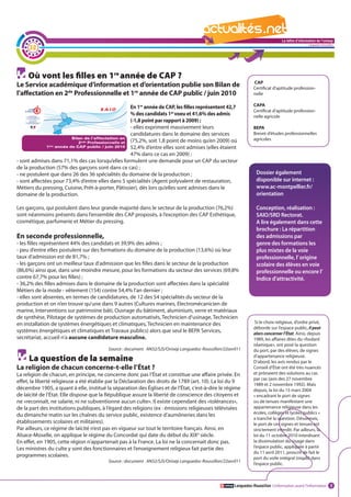 La lettre d'information de l'Onisep présente les modalités de préparation au concours de recrutement de professeurs des écoles ainsi que des statistiques sur les affectations en CAP et formations professionnelles pour les filles et les garçons. Elle aborde également des sujets tels que l'autorité parentale en milieu scolaire, la coopération universitaire transatlantique, et un forum sur les métiers de l'aéronautique. Ce document met en lumière divers enjeux éducatifs et d'orientation pour les étudiants et les parents dans la région Languedoc-Roussillon.