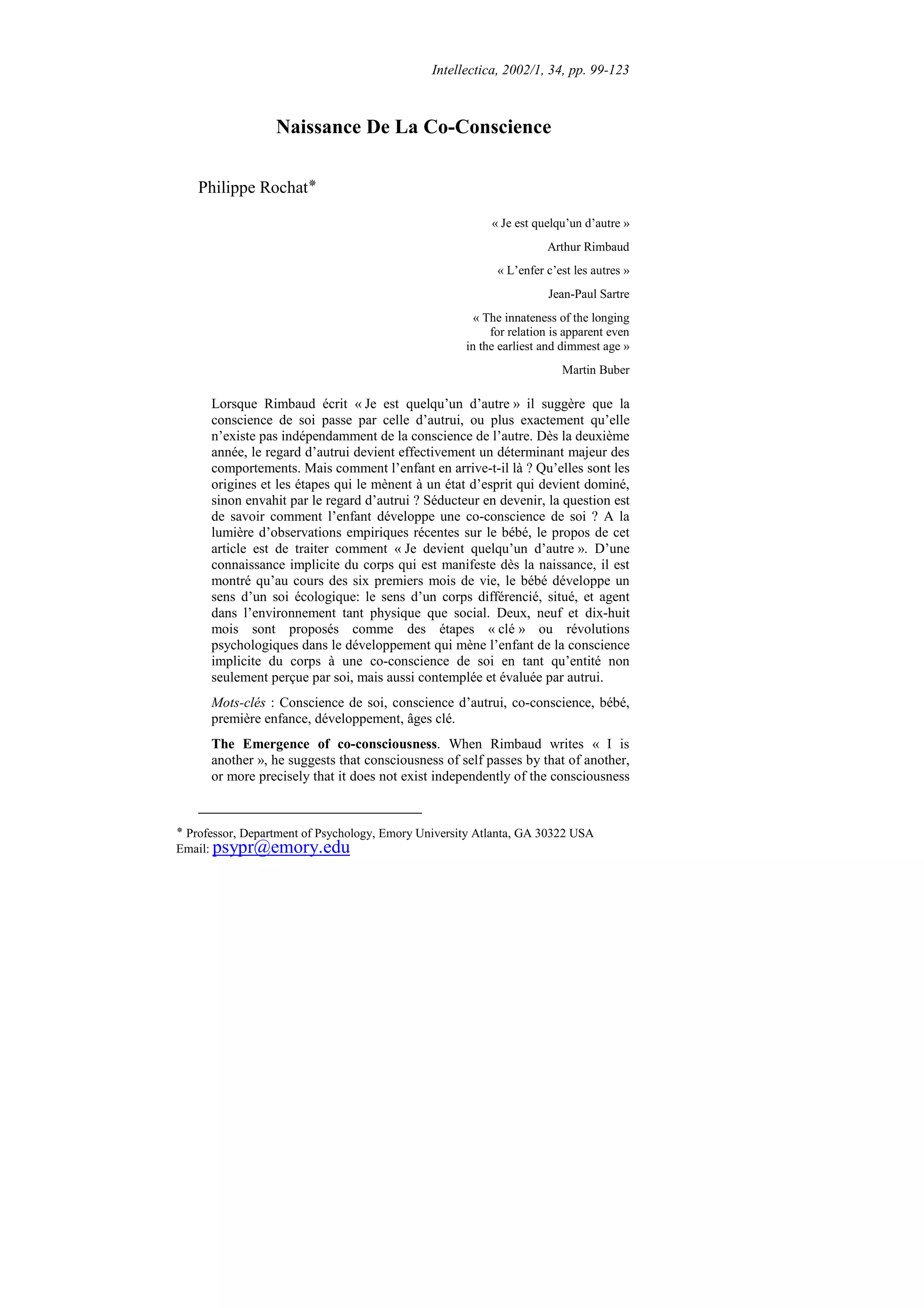 L'article explore la naissance de la co-conscience chez l'enfant, soulignant que la conscience de soi se développe finalement à travers la relation avec autrui, en particulier au cours des premiers mois de vie. L'auteur propose que les âges de deux, neuf et dix-huit mois sont des étapes clés dans ce processus, où l'enfant passe d'une conscience implicite d'un corps différencié à une co-conscience d'un soi évalué par les autres. Cette étude remet en question l'idée d'une conscience autonome en mettant l'accent sur la nature sociale et intersubjective de la formation de la conscience.
