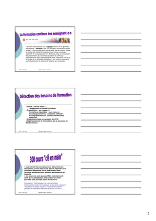 L'établissement secondaire de Morges-Beausobre accueille 830 élèves et dispose d'une équipe enseignante de 93 membres, avec des formations continues offertes aux enseignants pour améliorer leurs compétences. Le document aborde également l'accord intercantonal Harmos qui harmonise la scolarité obligatoire à travers la Suisse et présente divers programmes de formation académique, tels que le CAS, DAS et MAS. Enfin, des collaborations avec des universités et des organismes de formation sont mentionnées pour renforcer l'éducation dans trois domaines principaux : formation, recherche et expertise.