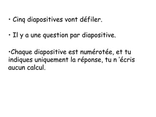 Le document présente une série de diapositives sur le calcul mental relatif à la longueur et à l'aire, contenant des questions numérotées à répondre sans calcul. Chaque diapositive inclut des exercices de réduction d'échelle et d'autres calculs simples. Les réponses correctes sont fournies à la fin pour chaque question posée.