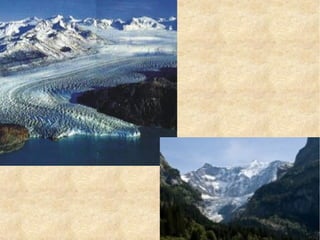 Le document aborde la dynamique de la terre et l'érosion, en expliquant les agents géologiques externes et internes qui influencent cette dégradation du relief. Il présente également les différents types de roches (sédimentaires, métamorphiques, ignées), leurs formations, et les divers facteurs affectant l'érosion, notamment le climat et l'activité humaine. Enfin, il illustre comment l'eau, le vent et les glaciers contribuent à façonner le paysage terrestre.