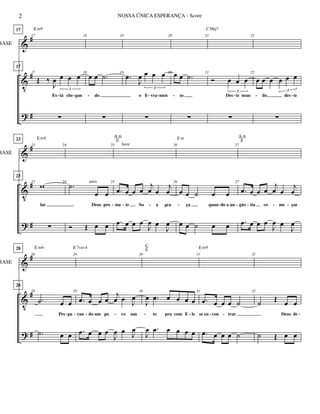 Le document semble être une partition musicale avec des annotations de mesures, accords et paroles. Il inclut des références à une œuvre intitulée 'Nossa Única Esperança', écrite par Lineu Soares et Valdecir Lima. La structure suggère qu'il s'agit d'une composition ou d'une histoire musicale avec des instructions pour les musiciens.