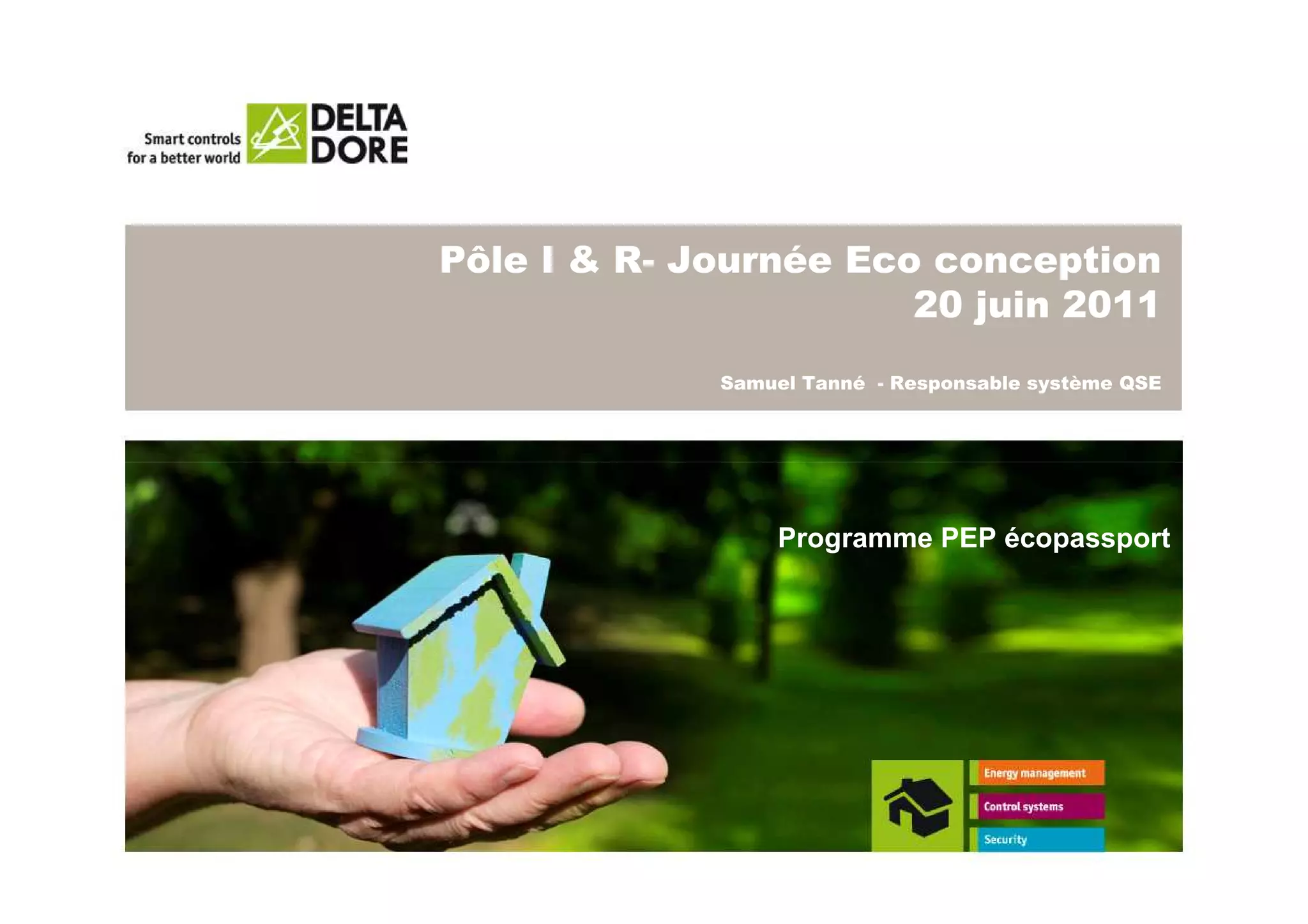 Le document présente les activités du groupe Delta Dore, axées sur la conception et la production de produits électroniques pour la domotique, tout en détaillant leur démarche d'écoconception pour répondre aux exigences du marché. Il souligne la mise en œuvre du programme PEP Ecopassport pour évaluer l'impact environnemental des produits, ainsi que la nécessité de méthodologies fiables et transparentes pour crédibiliser ces efforts. Enfin, des perspectives sont proposées pour élargir l'utilisation du programme à d'autres secteurs et enrichir les données disponibles sur les produits électriques dans les bâtiments.