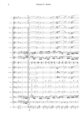 Le document semble être une partition musicale comportant diverses sections pour plusieurs instruments tels que les clarinettes, saxophones, trompettes et percussions. Il contient également des indications de tempo et des annotations musicales. Le texte est rempli de symboles musicaux, de notes et d'instructions de jeu, sans contenu explicatif additionnel.