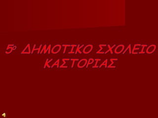 La 5e école primaire de Kastoria, fondée dans les années 70, se situe à l'entrée de la ville et propose diverses activités scolaires et culturelles. Les élèves participent à des projets tels que le festival du livre et des excursions éducatives, renforçant ainsi l'égalité et l'apprentissage. La communauté célèbre également des événements locaux et des fêtes nationales, tels que le carnaval et la fête de Noël.