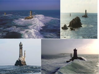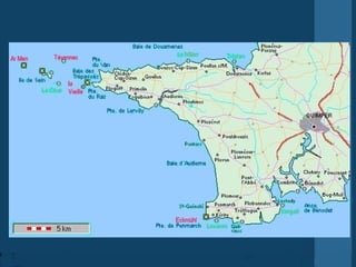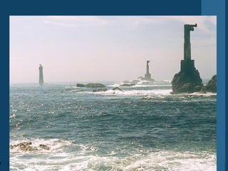 Le document décrit divers sites et phares le long des côtes de Bretagne, y compris des lieux emblématiques tels que la pointe de Penmarc'h et la rade de Brest. Il mentionne également des îles comme Ouessant et des caractéristiques géographiques importantes de la région. Ces détails fournissent un aperçu de la richesse maritime et historique de cette zone française.