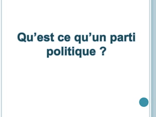 Le document présente une analyse des partis politiques marocains, en mettant l'accent sur la nouvelle loi sur les partis politiques et leurs doctrines respectives. Il aborde les programmes des partis au gouvernement et à l'opposition, ainsi que leur impact potentiel sur le développement durable et la démocratie au Maroc. La conclusion soulève des questions sur l'efficacité réelle des partis politiques dans le développement du pays.