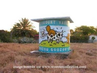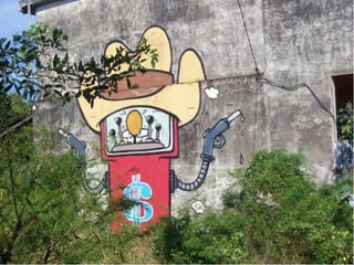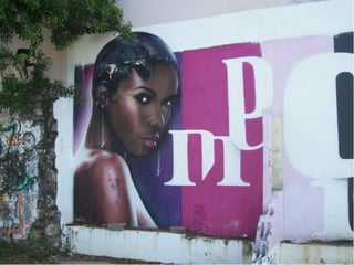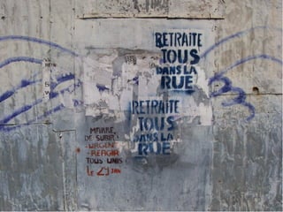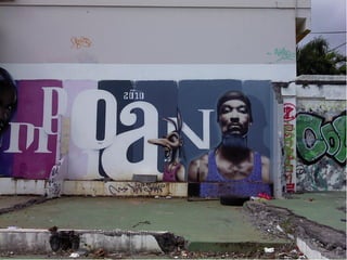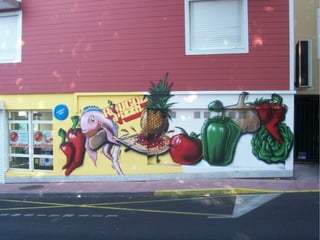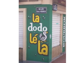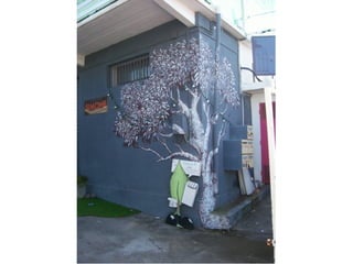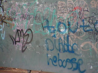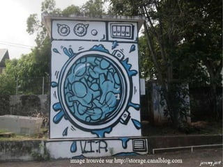 Le document aborde le thème du graffiti et des tags, en mettant l'accent sur leur utilisation dans la publicité et la décoration des façades de magasins. Il souligne également l'aspect de marquage de territoire associé à ces pratiques, ainsi que les œuvres des gouzous de l'artiste Jace.