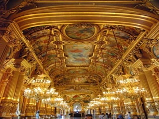 L'Opéra national de Paris, également connu sous le nom d'Opéra Garnier, a été construit entre 1862 et 1875 sur l'ordre de Napoléon III, conçu par l'architecte Charles Garnier. Le plafond de l'Opéra a été peint par Marc Chagall en 1964. Cette institution est emblématique de l'architecture et de la culture française.