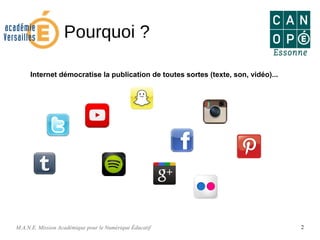 Le document présente un projet de publication destiné aux élèves, soulignant l'importance d'internet dans la démocratisation de la publication. Il aborde les objectifs pédagogiques, les règles de liberté d'expression, de propriété intellectuelle, et les obligations légales pour publier sur le web. Plusieurs plateformes académiques pour la création de blogs, de web radio et de contenu vidéo sont également mentionnées.