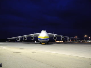 Le document décrit l'arrivée et le déchargement de l'Antonov 225 'Mriya' à Euroairport les 29-30 juin 2013. Il met en avant l'envergure exceptionnelle de l'avion et les procédures nécessaires pour son stationnement et le déchargement de sa cargaison. Des difficultés techniques sont également mentionnées lors du tractage de l'avion.