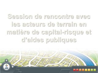 Le document traite des efforts de l'Agence Bruxelloise pour l'Entreprise (ABE) pour soutenir le développement entrepreneurial à Bruxelles à travers divers mécanismes de financement, notamment des fonds de garantie et des prêts subordonnés. Il met en avant les outils de cofinancement disponibles pour les entreprises, ainsi que les aides publiques destinées à encourager la croissance économique et l'innovation. Enfin, il aborde les critères d'éligibilité et les processus nécessaires pour bénéficier de ces soutiens financiers.