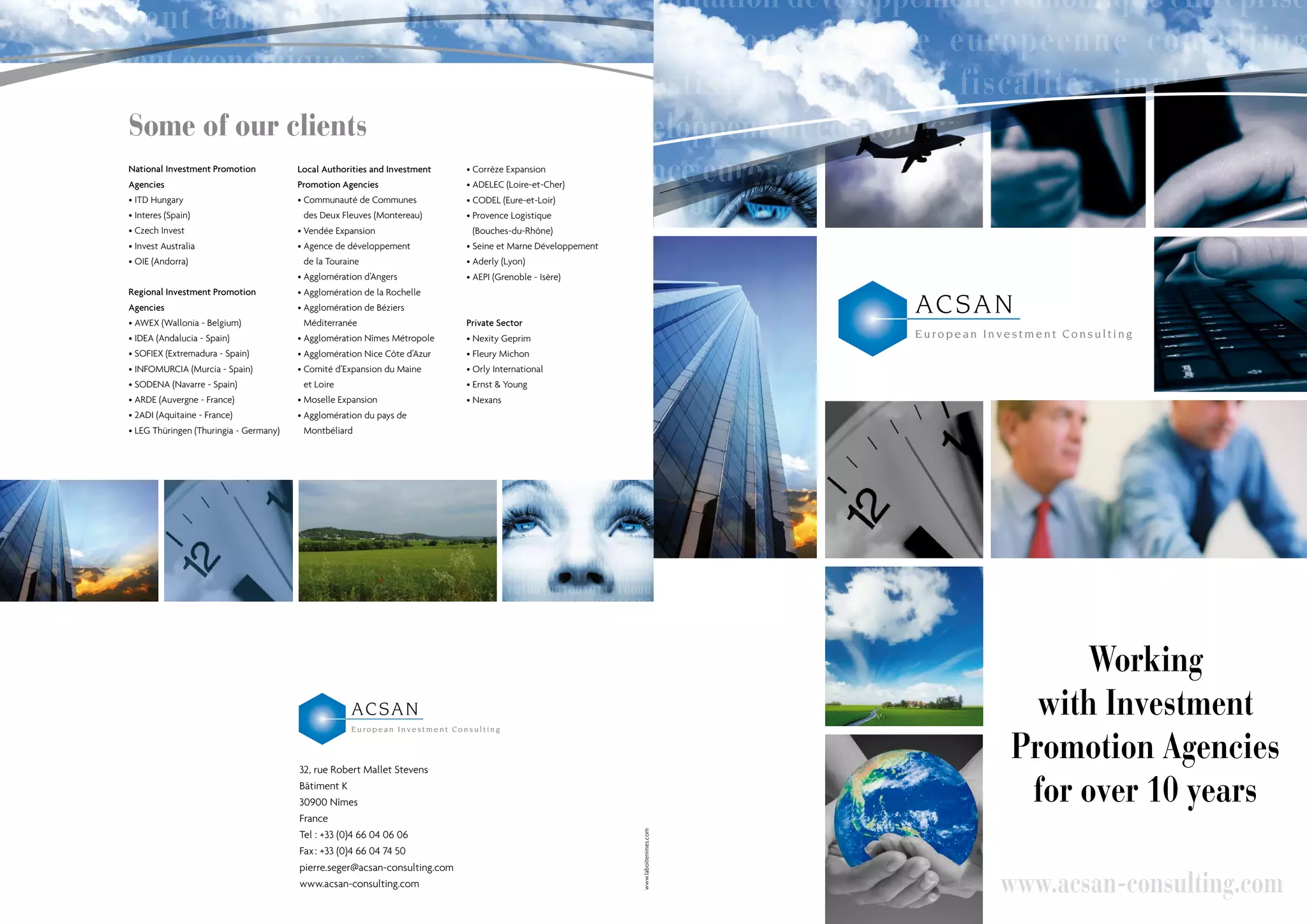 Le document traite de l'implantation et du développement économique des entreprises en Europe, mettant en avant les agences de promotion des investissements et leur rôle dans l'emploi et la fiscalité. Il mentionne divers clients et projets, ainsi que des exemples de collaboration avec des agences régionales et européennes. L'accent est mis sur le conseil en investissements et la génération de leads pour des projets d'expansion des entreprises.