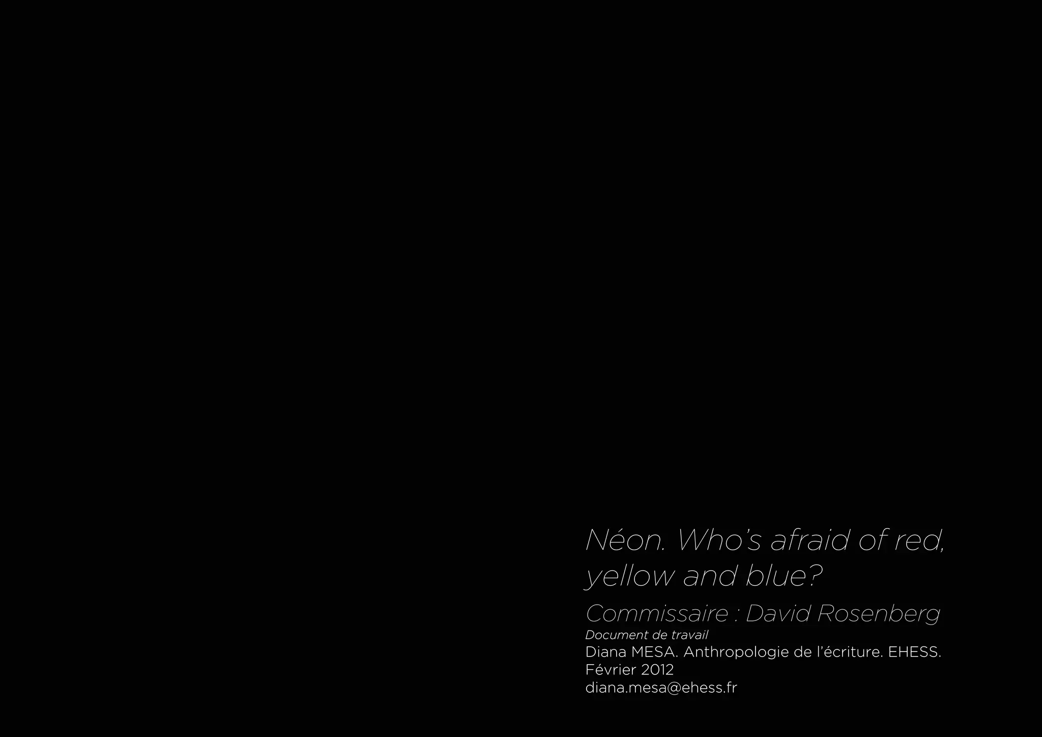 Le document de travail de Diana Mesa aborde l'anthropologie de l'écriture à travers une analyse d'œuvres d'art en néon, mettant en avant divers artistes et leurs créations de 1960 à 2011. Il liste de nombreux travaux et leur impact artistique, soulignant la diversité des thèmes abordés à travers le médium du néon. Ce document est une ressource précieuse pour comprendre l'évolution de l'art contemporain à travers cette forme spécifique d'expression.