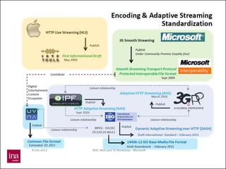 Le document traite du streaming dynamique adaptatif, expliquant son évolution, ses protocoles, et ses aspects techniques et juridiques. Il souligne l'importance croissante des vidéos sur Internet et les problématiques de compatibilité et de qualité liées à la diffusion en continu. Enfin, il présente les principaux acteurs du marché et leurs solutions pour le streaming adaptatif, notamment Microsoft, Apple et Adobe.