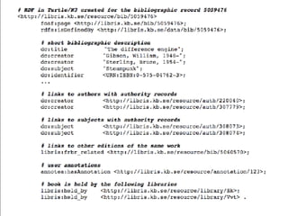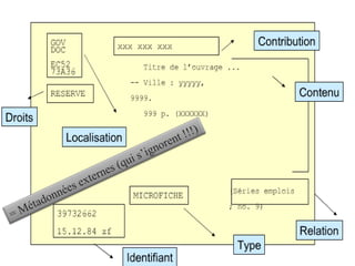 La présentation aborde les mutations des formats bibliographiques à l'ère numérique, en se concentrant sur l'impact du XML et des métadonnées dans le catalogage et la gestion des données. Elle souligne l'importance des nouveaux enjeux interprofessionnels et de l'interopérabilité dans la transition vers le web de données, tout en détaillant les schémas et normes essentiels, tels que FRBR et RDA. La formation inclut des démonstrations d'outils pour la manipulation des données et la préservation du patrimoine numérique.