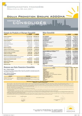 Au 30 juin 2011, Douja Promotion Groupe Addoha a enregistré un chiffre d'affaires consolidé de 2,8 milliards de dirhams et un résultat net de 481 millions de dirhams, malgré une perte de 240 millions de dirhams liée à l'opération de la Société d'Aménagement de Saïdia. Les projets en cours incluent la construction de 58 000 logements, dont 80% sont sociaux, et des expansions dans de nouvelles villes. Les prévisions financières indiquent un objectif de chiffre d'affaires de 9,2 milliards de dirhams pour l'exercice 2011, avec un résultat net visé de 2 milliards de dirhams.
