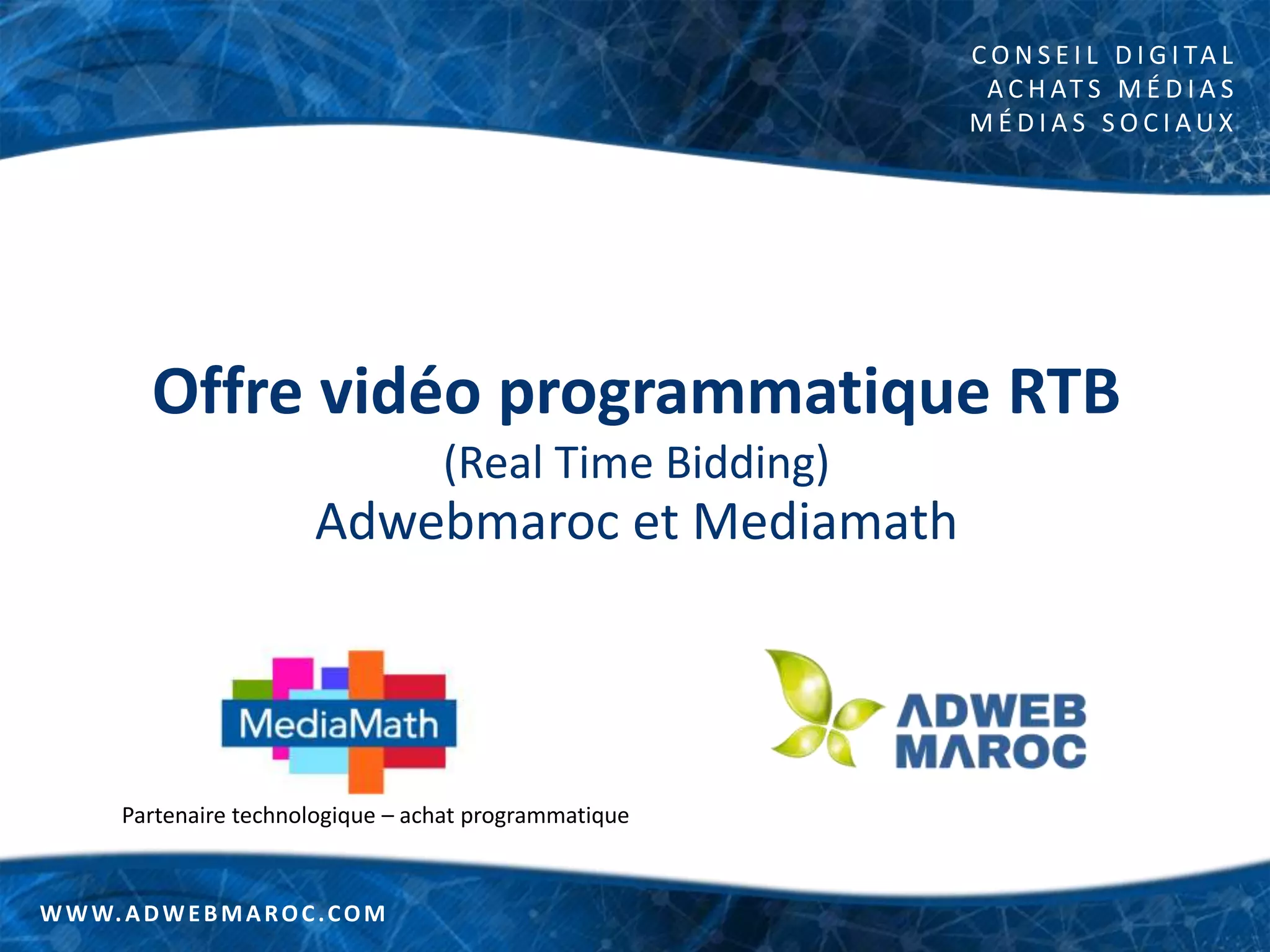 Adweb Maroc se spécialise dans l'achat programmatique par enchères en temps réel (RTB) pour la publicité vidéo, offrant des opportunités d'optimisation de budgets, un accès à un inventaire vidéo de qualité et des capacités de ciblage avancées. Le document détaille le processus de mise en œuvre de cette stratégie, en soulignant l'importance de la phase d'analyse des enjeux, de la conception d'un plan d'action et de l'optimisation continue des campagnes. En 2017, la publicité programmatique représente une part importante des investissements en France, avec une croissance notable dans les segments vidéo et mobile.