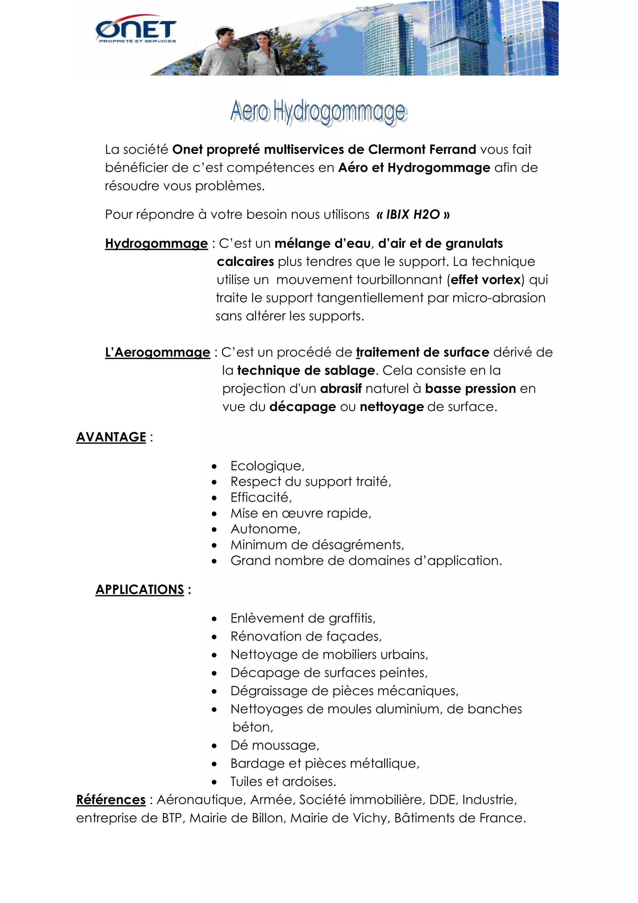 Onet propreté multiservices offre des solutions d'aéro et hydrogommage pour le nettoyage et la rénovation de surfaces. Ces techniques, respectueuses de l'environnement et efficaces, sont adaptées à divers domaines tels que l'enlèvement de graffitis et la rénovation de façades. L'entreprise utilise un matériel spécialisé pour garantir des résultats optimaux.