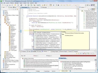 Le document présente des méthodes pour industrialiser le développement avec PHP, en mettant l'accent sur l'intégration de l'équipe de qualité et le respect des conventions de développement. Des pratiques telles que la mise en place de tests automatisés, le déploiement facilité et le suivi des métriques de qualité sont discutées. Les auteurs, Damien Seguy et Olivier Hoareau, partagent des exemples de technologies et proposent des outils pour améliorer la qualité et l'efficacité dans le développement.