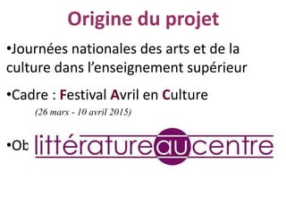 L'assemblée générale du 19 juin 2014 a élaboré un projet pour un festival intitulé 'Avril en culture', centré sur les relations entre la littérature et la musique, avec des événements variés tels que des rencontres d'écrivains et des concerts. Ce festival vise le grand public, de l'enfance à l'âge adulte, et se déroulera chaque année au printemps avec un thème différent. L'association l.a.c. d'Auvergne, créée en mars 2014, est responsable de l'organisation de cet événement, qui cherche des partenariats au niveau national et régional.