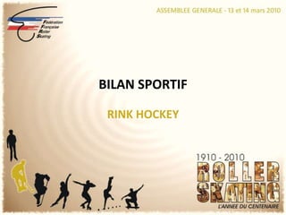 Le rapport présente un bilan sportif détaillé du rink hockey, incluant des résultats de compétitions internationales et nationales de la saison 2008-2009. Il souligne les performances des équipes féminines et masculines ainsi que des actions pour le développement du sport, la formation et la communication. Malgré des réussites, le rapport met en lumière des préoccupations concernant le nombre stagnant de licenciés et le soutien institutionnel déclinant.