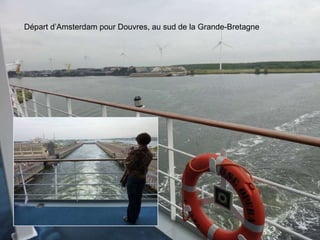 Le document décrit un voyage en bateau de Amsterdam à Douvres, puis à travers les fjords norvégiens jusqu'au cap Nord et Tromsø. Les escales incluent Bergen, Honningsvåg et Alesund, avec des mentions de paysages emblématiques et d'activités. Le voyage se termine par une visite d'Amsterdam avant le retour en Suisse.